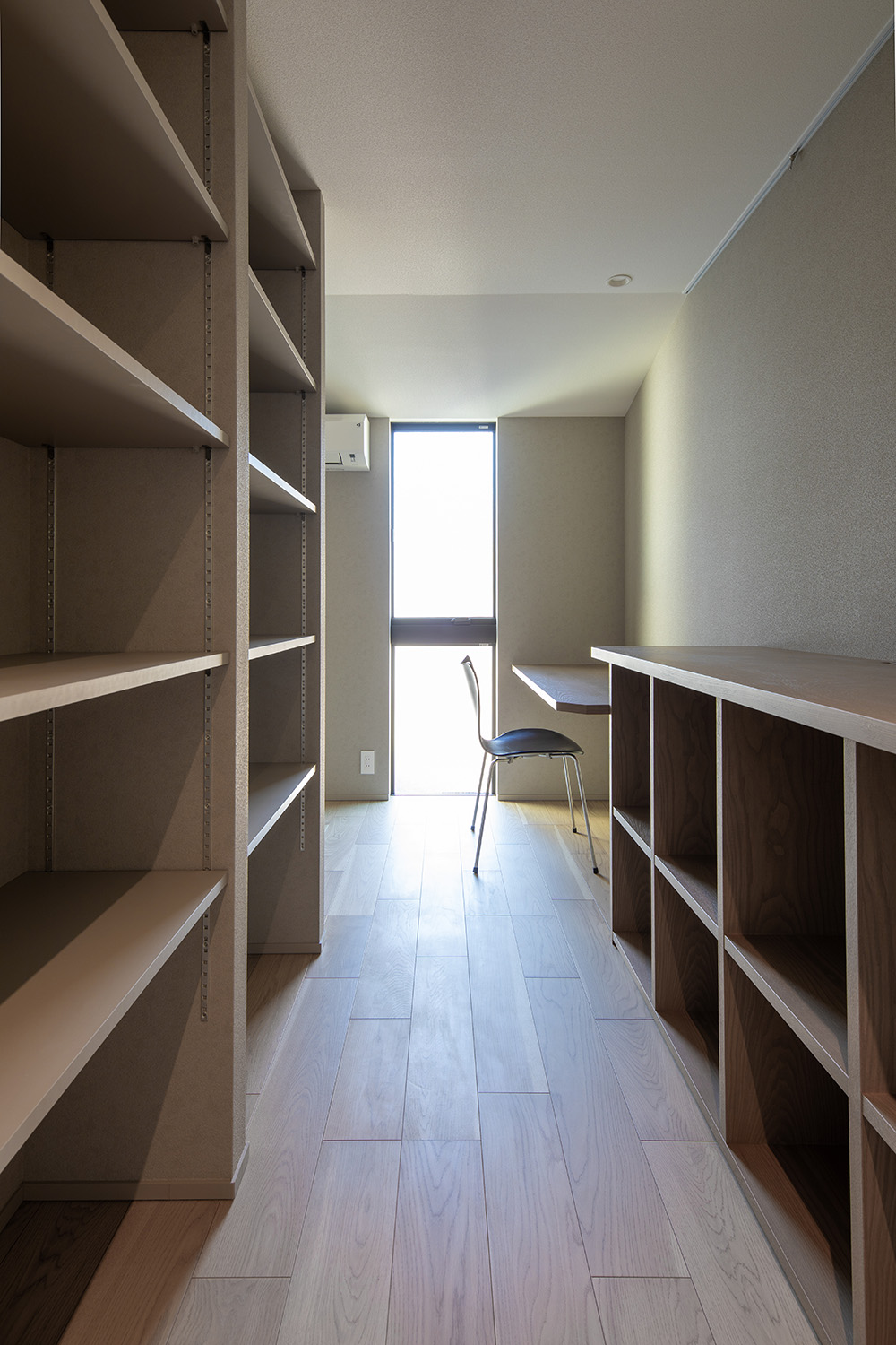 ご主人は在宅での仕事が中心であるため、集中できる環境と趣味の時間を両立できる書斎を設けた。